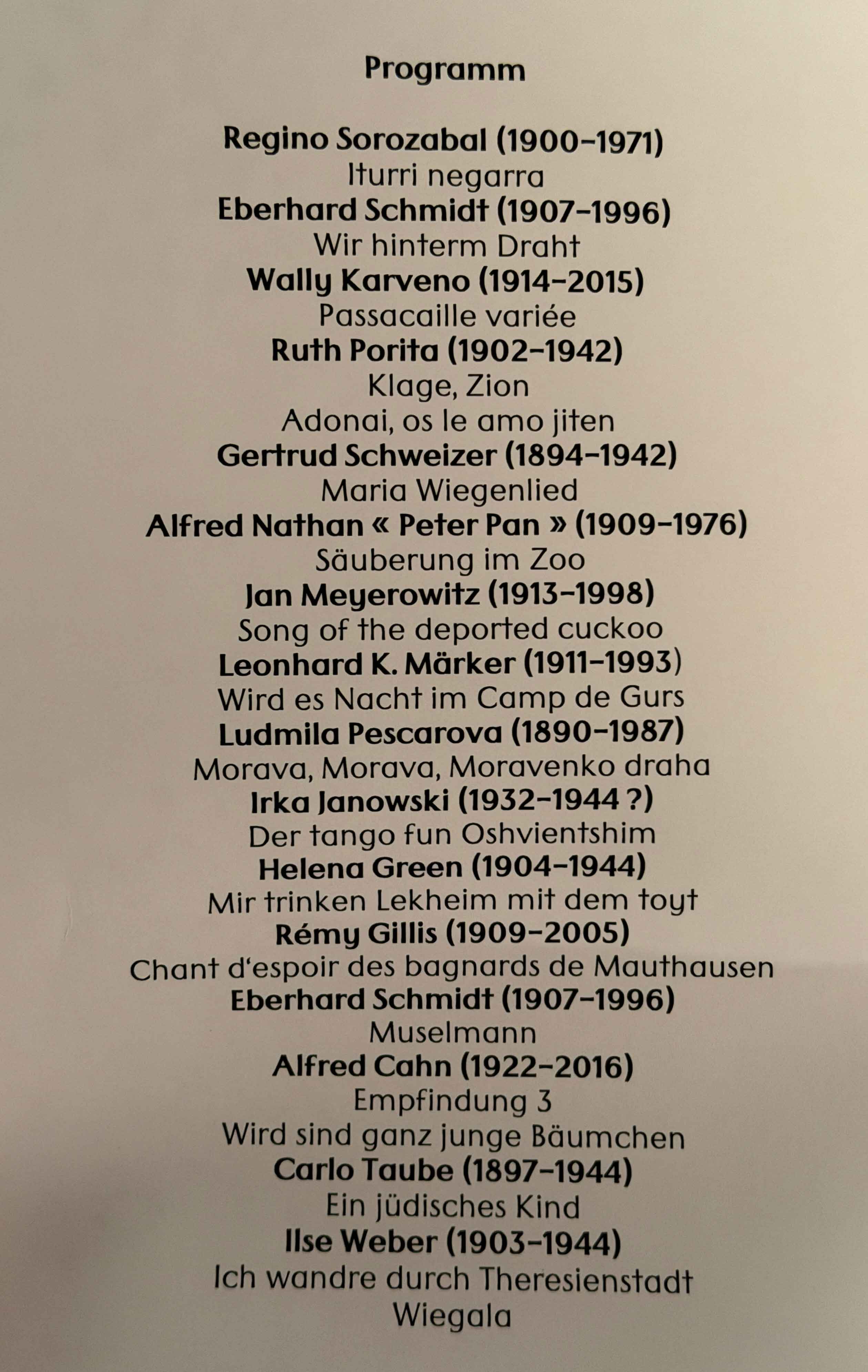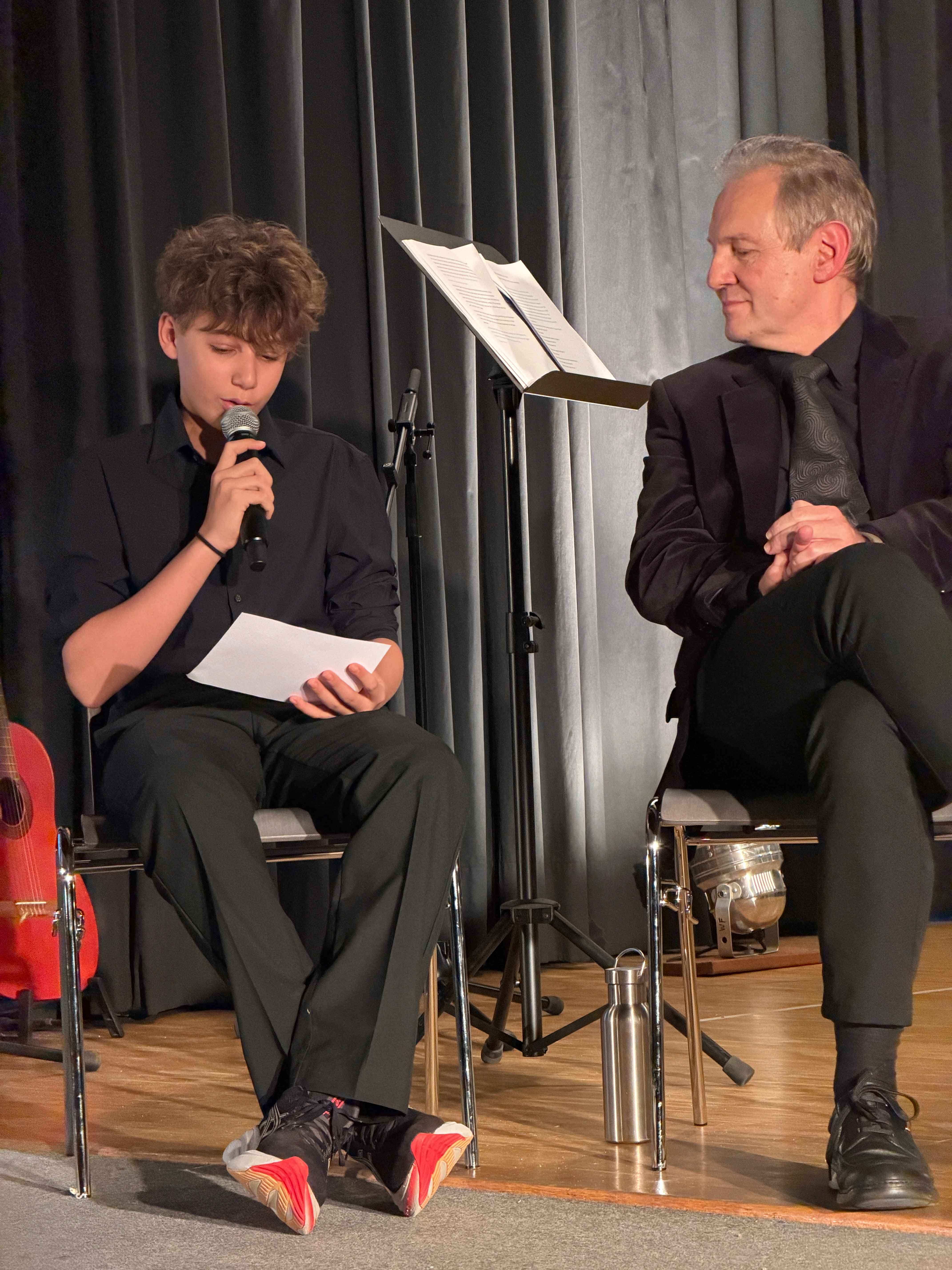 Im Rahmen der Woche des Gedenkens fand am 26. Januar in unserer Aula ein Konzert unter dem Titel „Musik aus den Lagern“ statt. Ziel des Konzerts war es, auch mehr als 80 Jahre nach dem Holocaust der Opfer zu gedenken. Die beiden internationalen Künstler Melina Burlaud (deutsch-französische Pianistin und Historikerin) und Gorka Robles Alegria (baskischer Tenor) trugen auf eindrucksvolle Weise Musik vor, die in den Lagern Gurs (Südfrankreich) und im Vernichtungslager Auschwitz entstanden, gespielt oder gesungen wurden. Zwischen den Stücken erzählten sie die Geschichten hinter den Liedern und gaben Einblicke in die Lebensumstände der Menschen. Besonders eindrücklich wurde dabei die Bedeutung der Musik als Zufluchtsort und Quelle der Hoffnung – auch und gerade für Kinder in dieser Zeit.