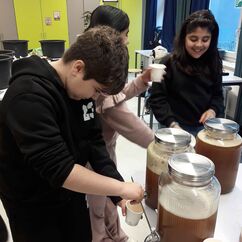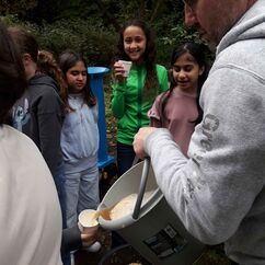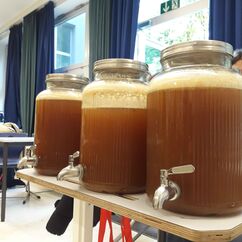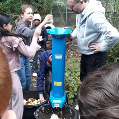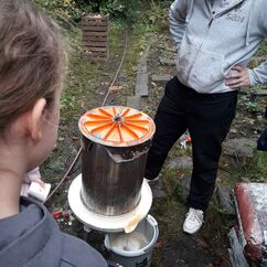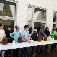 Wir haben aus 240 kg Äpfeln Apfelsaft gemacht. Es hat echt Spaß gemacht. Das Beste daran war: es war kostenlos. Der Saft hatte einen Geschmack, der war am Anfang süß und der Nachgeschmack war säuerlich. Es war aber echt lecker, mit Sprudelwasser am besten. Das Aufräumen am Ende war nicht so toll, der Boden sah am Ende nicht mehr so aus wie davor. Unsere Klasse hat den ganzen Apfelsaft verschenkt, so dass am Ende nichts mehr da war.