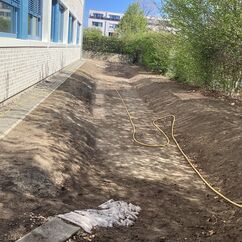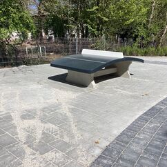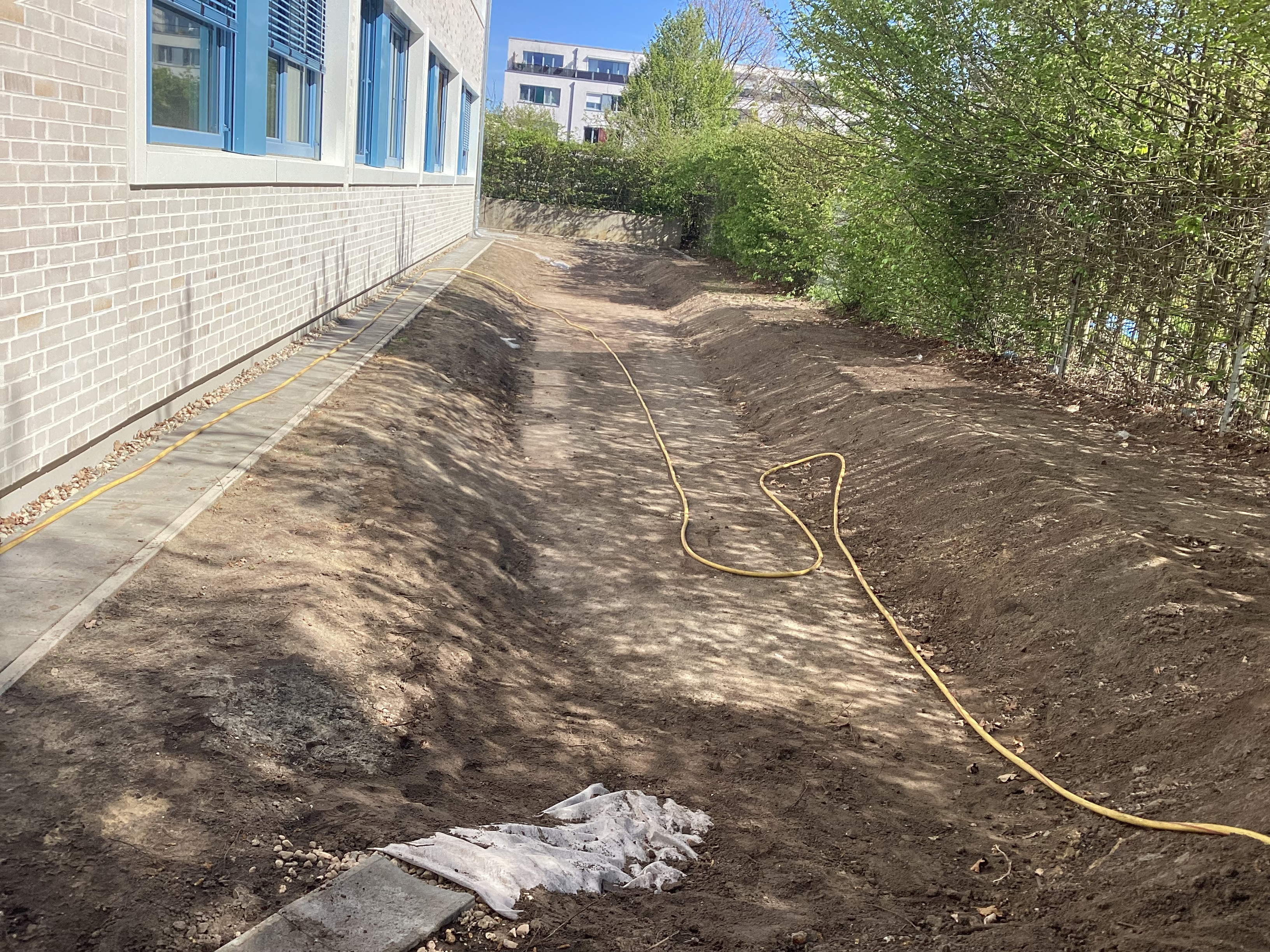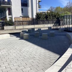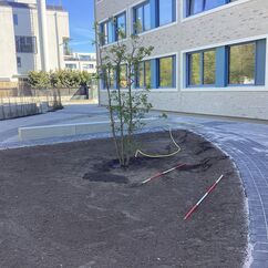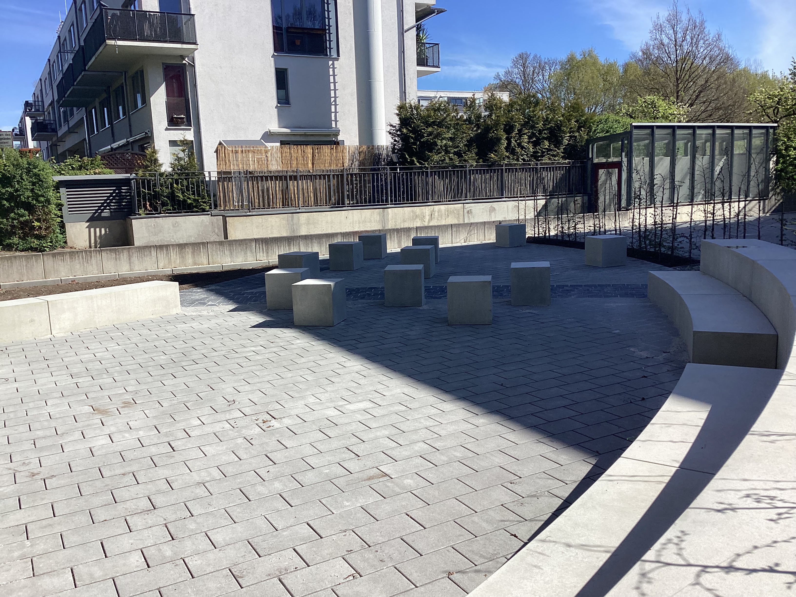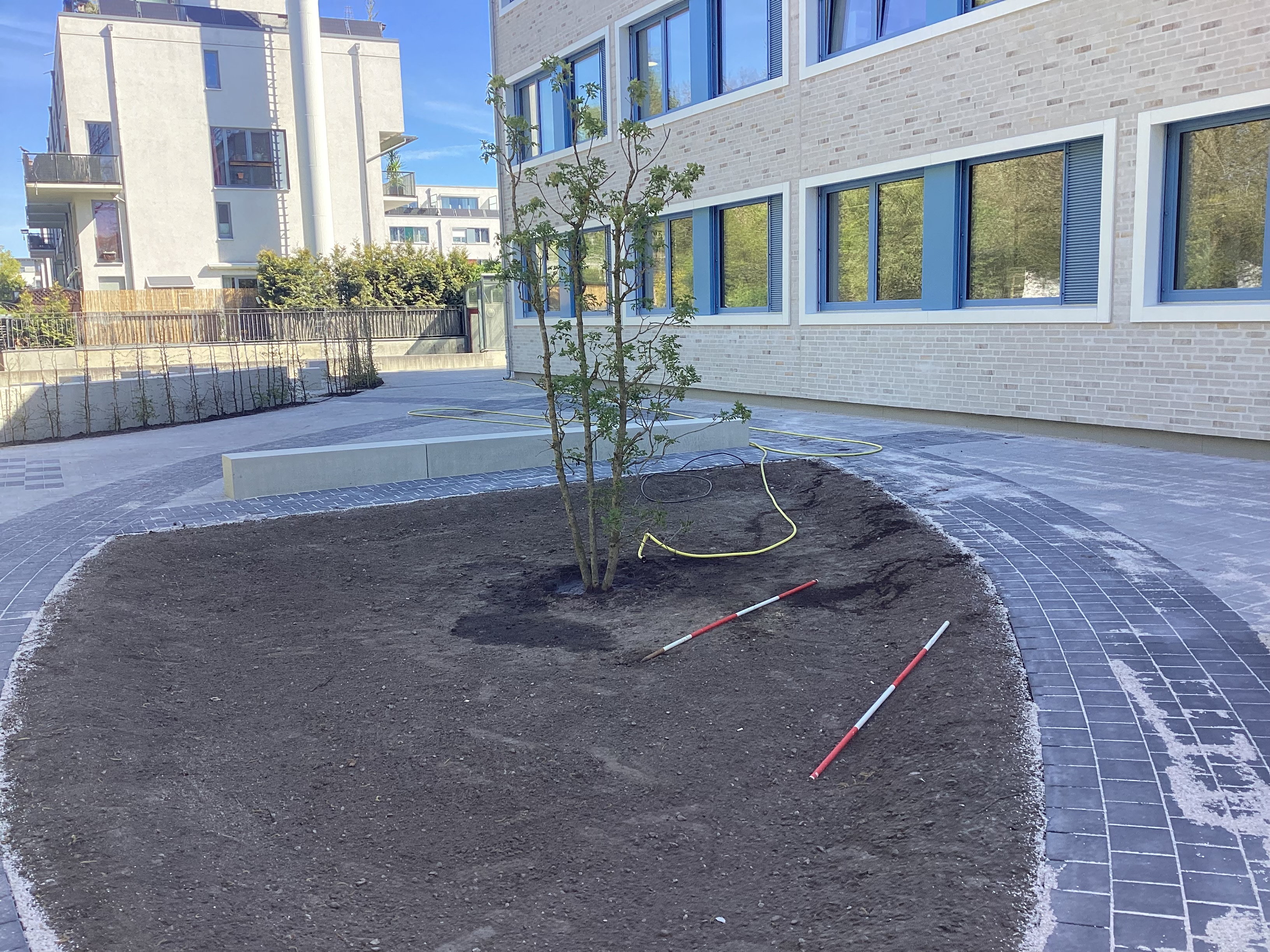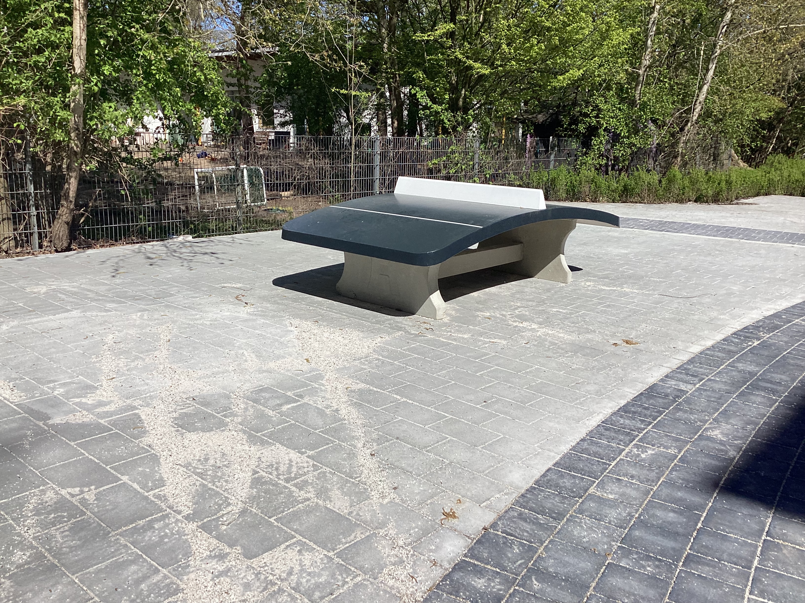 Damit man gut lernen kann, ist es ebenso wichtig, auch die Pausen in schöner und entspannter Atmosphäre zu verbringen. Rund um das Haus O wurde der Außenbereich neu gestaltet und gepflastert. Es sind Sitzgelegenheiten wie Betonhocker und eine Tischtennisplatte fest installiert worden, die in den Pausen genutzt werden können. Außerdem wurden Beete mit neuen Pflanzen angelegt und die Umgebung insgesamt aufgewertet. So lässt sich der Bereich auch während der Schulstunden bei gutem Wetter für Unterricht außerhalb geschlossener Räume nutzen.