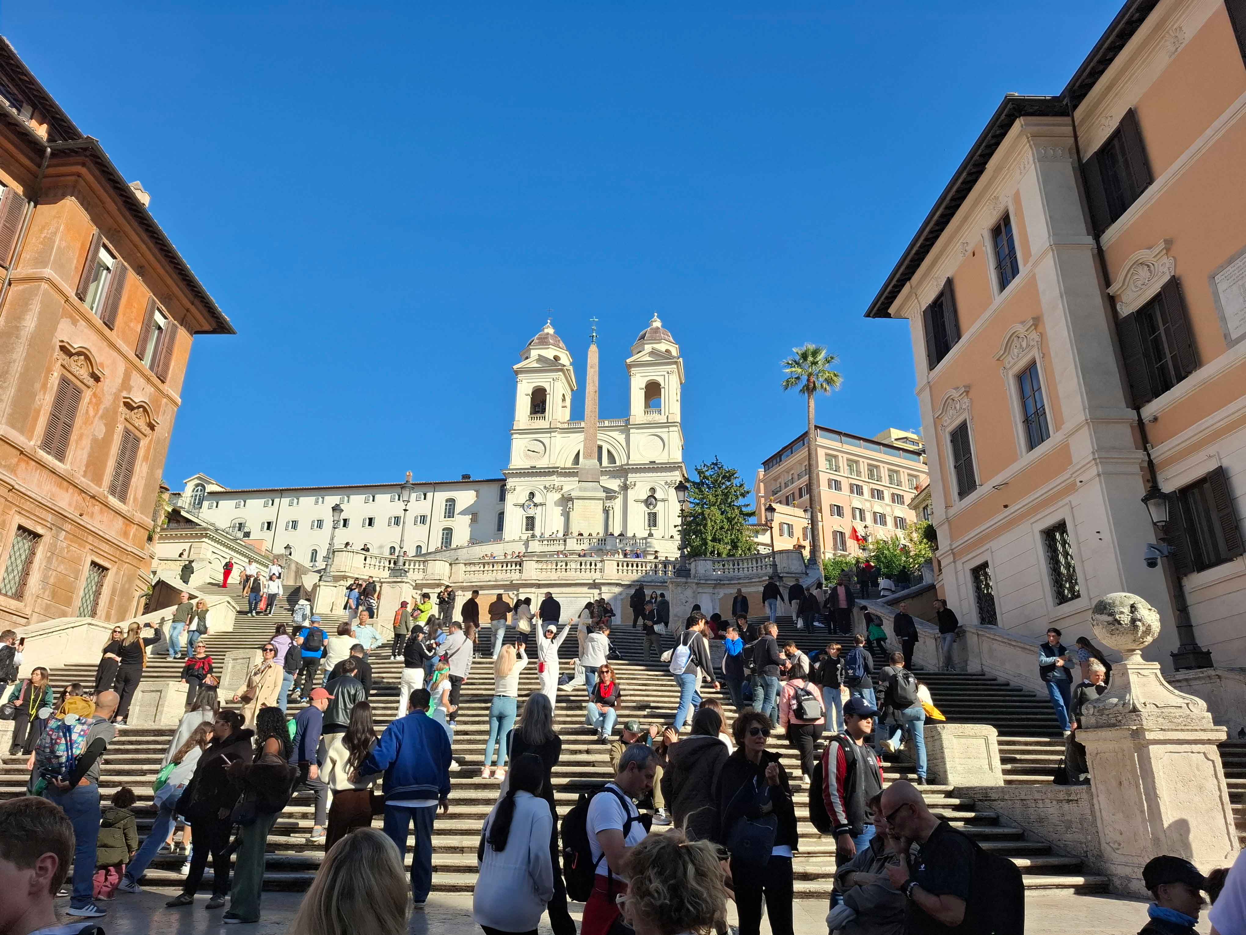 Am Samstag ging es mit dem Flugzeug nach Rom. In den ersten Tagen haben wir Sehenswürdigkeiten wie das Kolosseum, der Trevi-Brunnen und die Spanische Treppe erkundet. Anschließend wurde geprobt. Besonders schön war der Austausch mit den Knaben des päpstlichen Chores „Cappella Musicale Pontificia Sistina“. Mit ihnen haben wir uns über kulturelle Themen und musikalische Interpretationen unterhalten sowie ein wenig Italienisch gelernt. Am Dienstag, dem 11. November war das Konzert. Die Kirche war sehr gut besucht und online haben viele Zuschauer:innen das Konzert angeschaut, welches live übertragen wurde. Knapp 90 Minuten ging das Konzert mit Werken von berühmten Komponisten wie Mozart, Bach, Beethoven