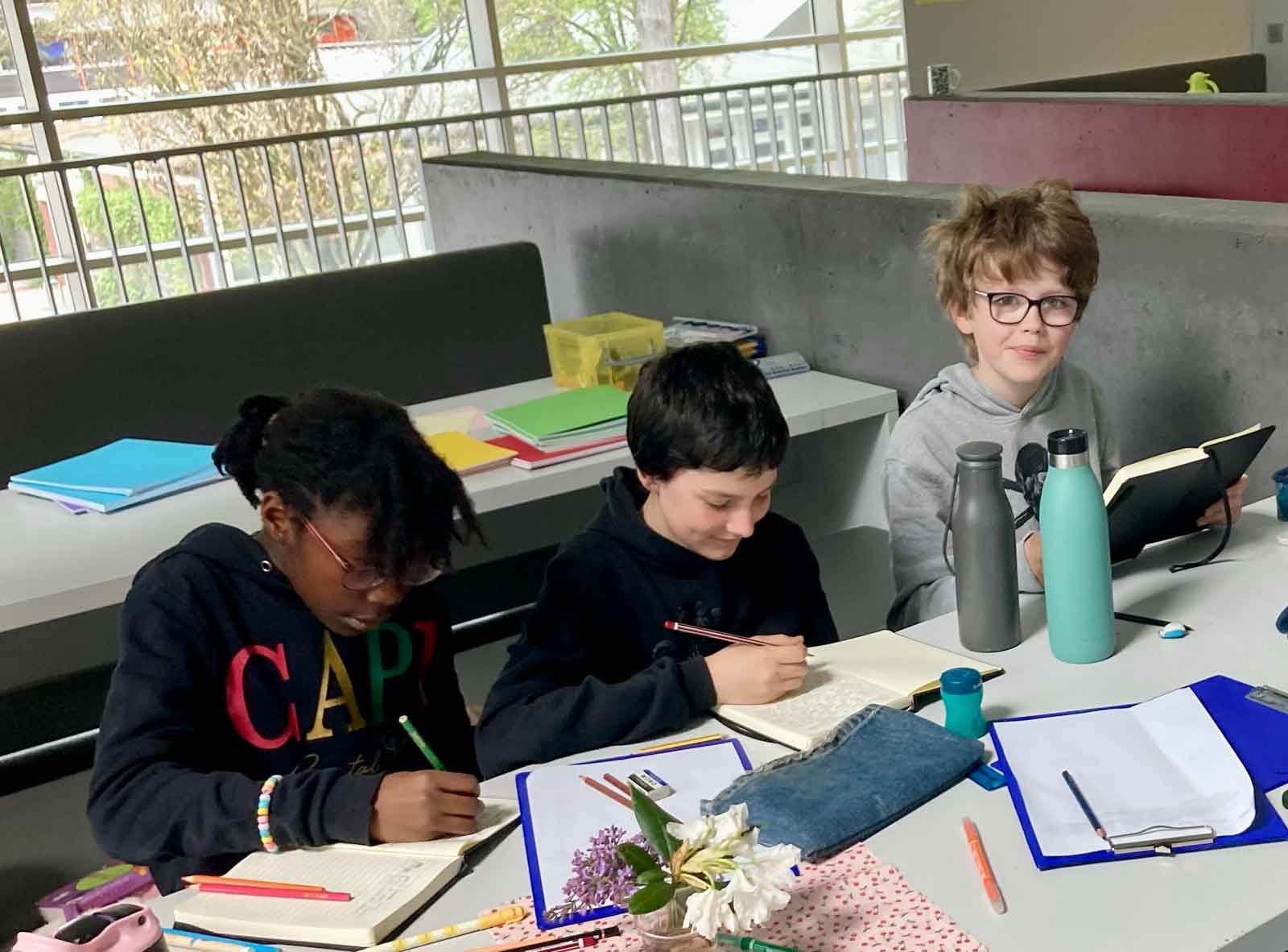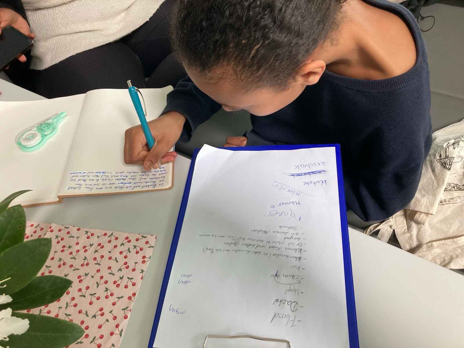 Junge Autor:innen der Klassen 3 bis 7 ließen ihren Gedanken auf dem Frühlings-Schreibworkshop freien Lauf: Da erlebten die drei Fragezeichen ein neues Abenteuer, eine spannende Klassenreise lief wie ein Film ab, der Todesfall eines Mädchens musste geklärt werden, für Frauenrechte wurde gekämpft, die Einzigartigkeit jedes Einzelnen wurde gewürdigt und wenn du denkst, dass alles verloren ist und nichts mehr geht, ist da immernoch ein Freund oder eine Freundin in deiner Nähe. Viele richtig literarische Texte wurden vorgelesen und in Fachgesprächen gab es gute Tipps, spannende Fragen und viel gegenseitige Wertschätzung.