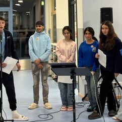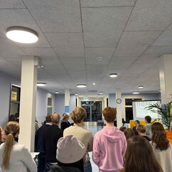 Zu unserer feierlichen Einweihung des O-Hauses mit dem Eltern- und Schülerrat kamen auch zahlreiche Schülerinnen und Schüler sowie interessierte Gäste von umliegenden Schulen. Vorgestellt wurden das Gebäude, die Planungen für das Außengelände sowie das Pädagogische Konzept. SchülerInnen der 9. Klasse berichteten von ihren ersten Wochen in dem neuen Haus. Bilder von diesem besonderen Abend, sowie den Zeitungsbericht von Frau Blume gibt es hier.