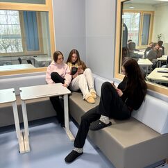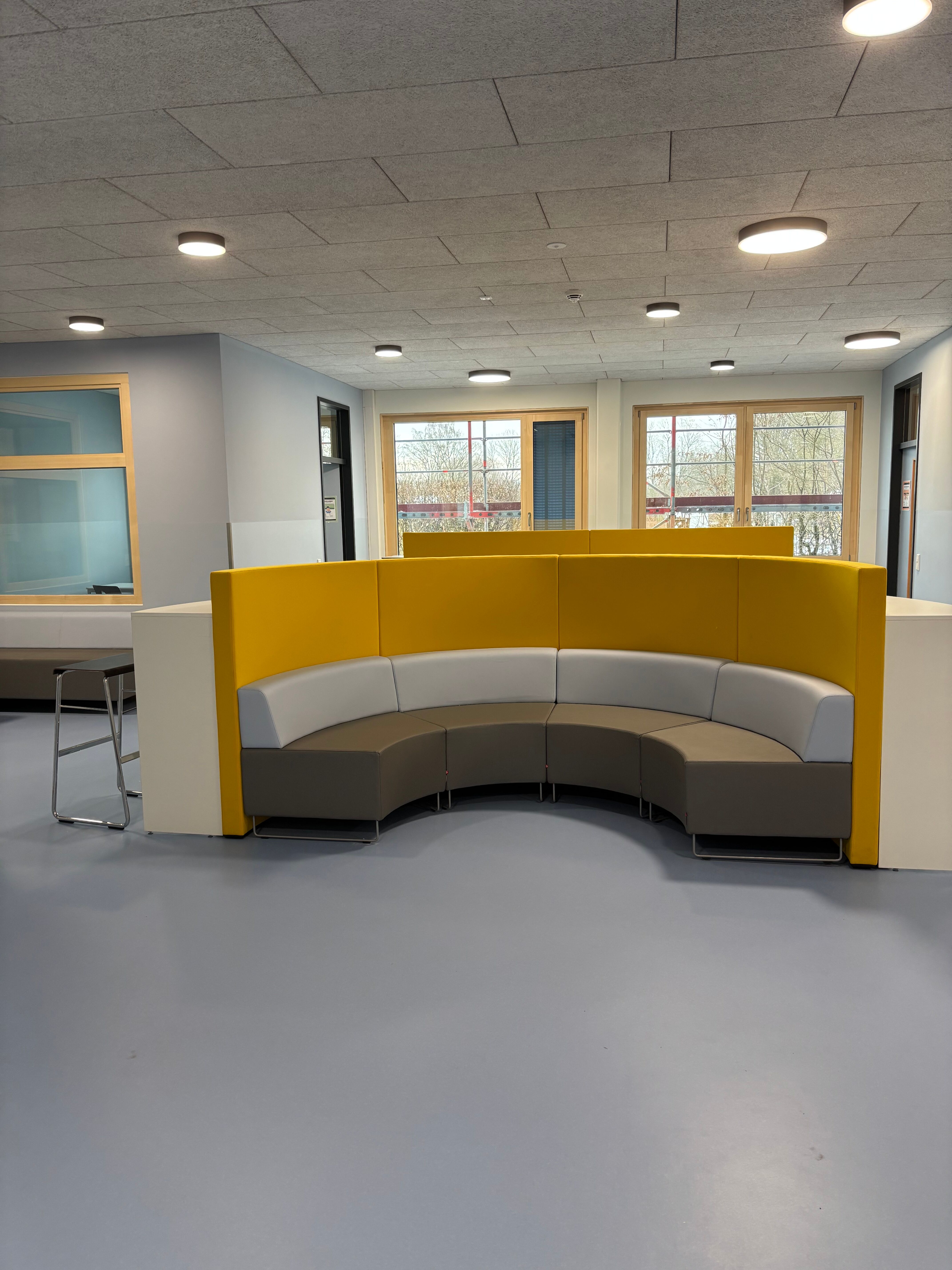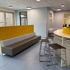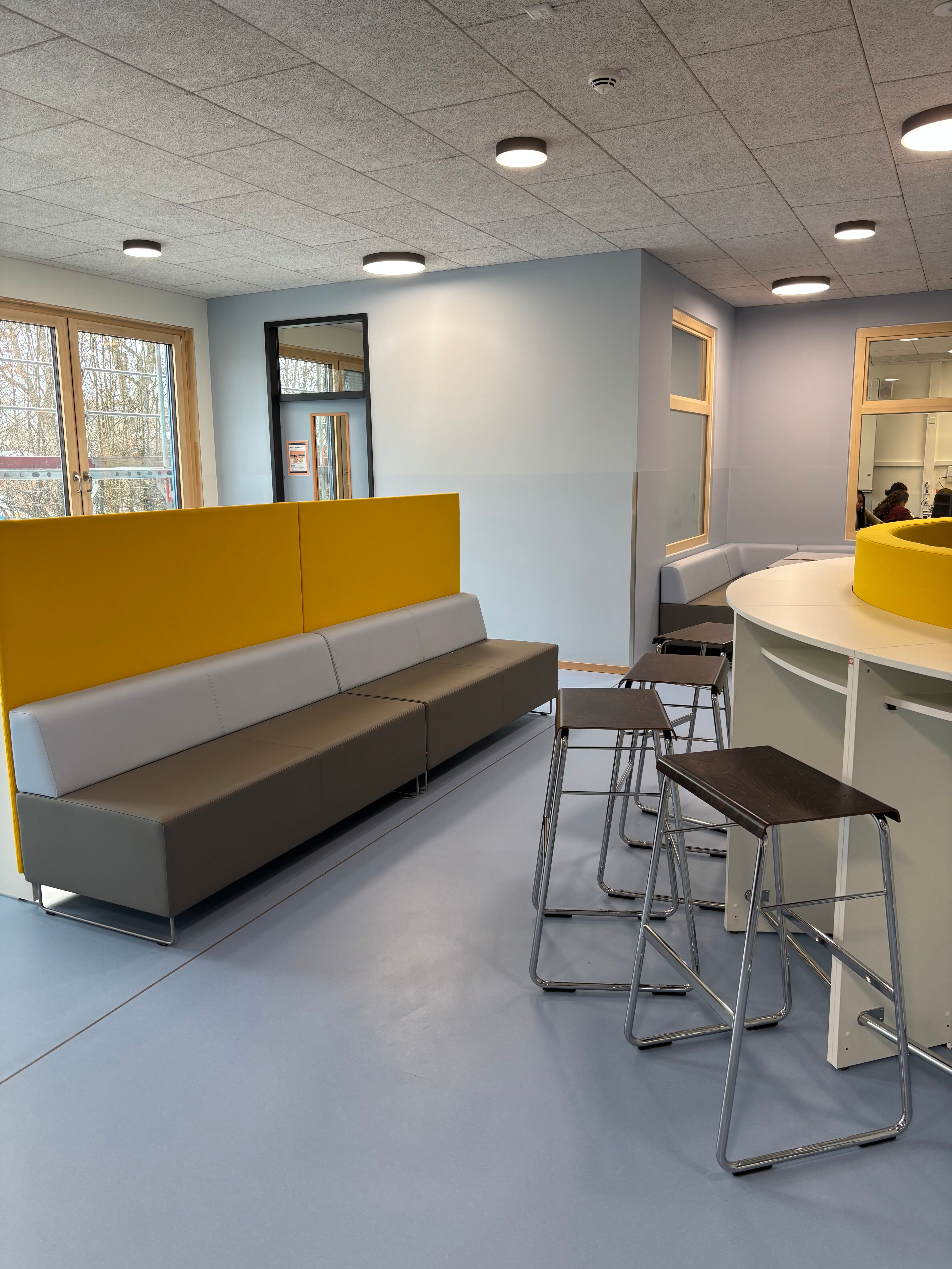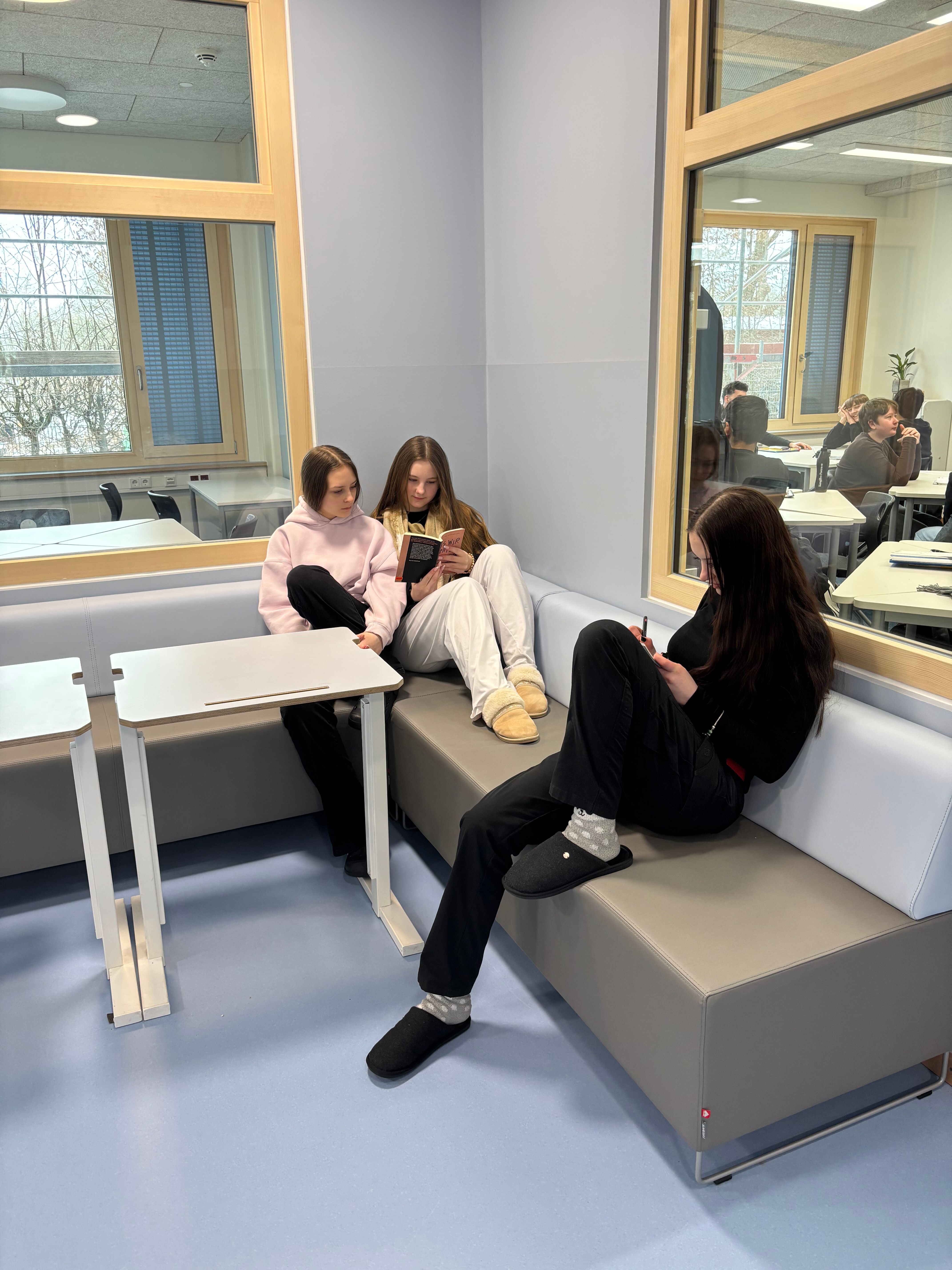 Endlich sind wir in das neue Gebäude eingezogen. Insgesamt mit fünf neunten und zwei zehnten Klassen. Der Marktplatz bietet sehr viel Platz, um im Schulalltag eigenständig und viel freier in Gruppen- Partner oder Einzelarbeit in der Schule zu lernen und die Pausen zu verbringen. Das Haus ist mit Bodenheizung ausgestattet und nicht mit Heizungskörpern. Dadurch wird die Temperatur reguliert. Außerdem sind Hausschuhe im neuen Gebäude Pflicht, damit es immer sauber und ordentlich bleibt. Die ersten Stunden im neuen Gebäude waren schon richtig gut und wir haben viel geschafft. Besonders auffällig ist die gute Akustik. Auch wenn sich mehrere Schüler oder Schülerinnen auf der Lernfläche aufhalten, ist es trotzdem angenehm ruhig.