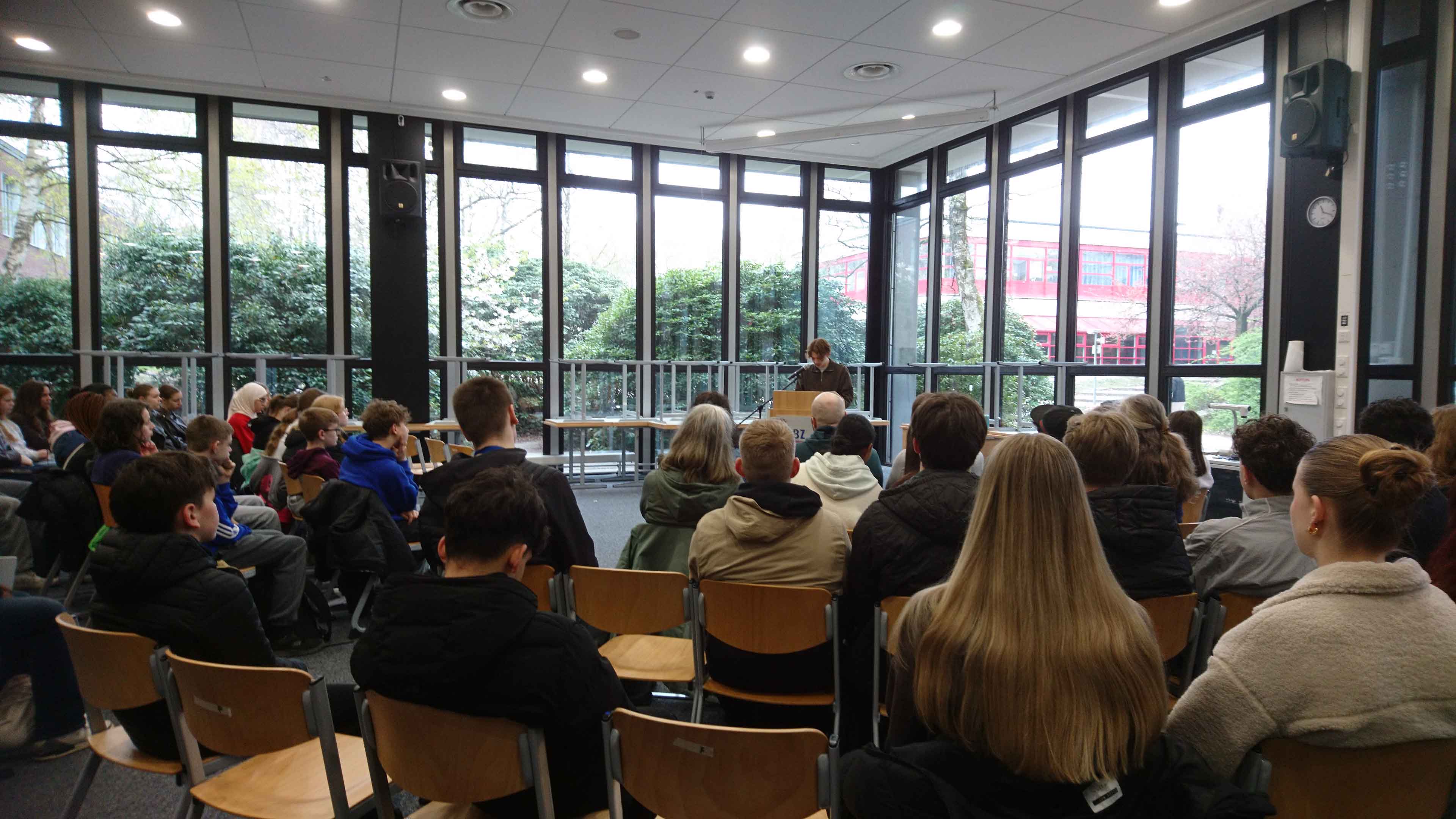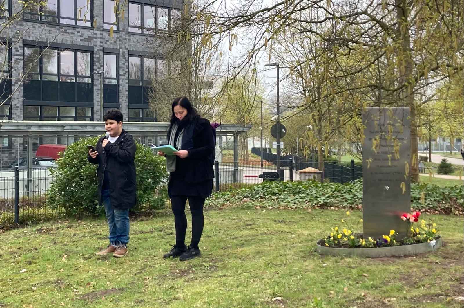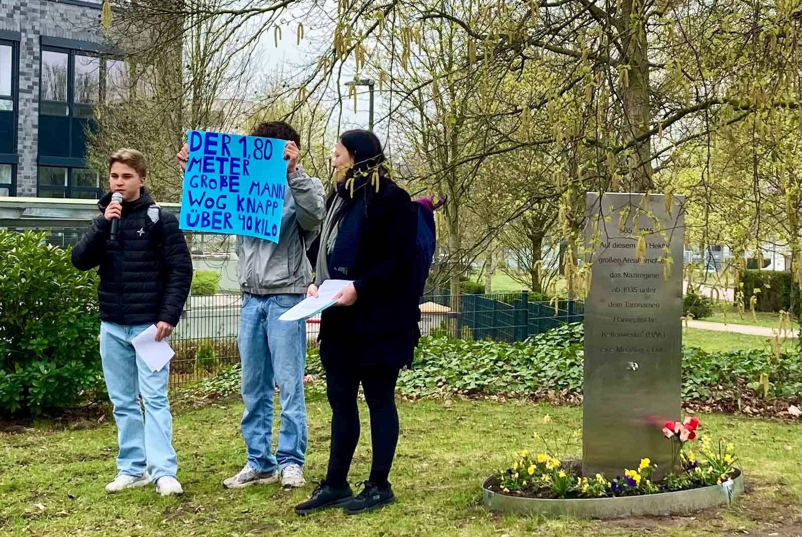 Mit diesen Fragen kam die Gedenkstättenpädagogin Kim Kielau auf eine Gruppe Schüler:innen zu, die sich seit Beginn des Jahres mit demokratischen Themen und gesellschaftlicher Teilhabe auseinandersetzen: Die Demokratie-Jugend des Jahrgangs 7, angeleitet von zwei Schülerinnen aus Jg. 9 und zwei Kolleginnen. Kim Kielau lud uns ein, uns an der Vorbereitung eines Gedenkmarschs zu diesem Ereignis vor 81 Jahren zu beteiligen.
