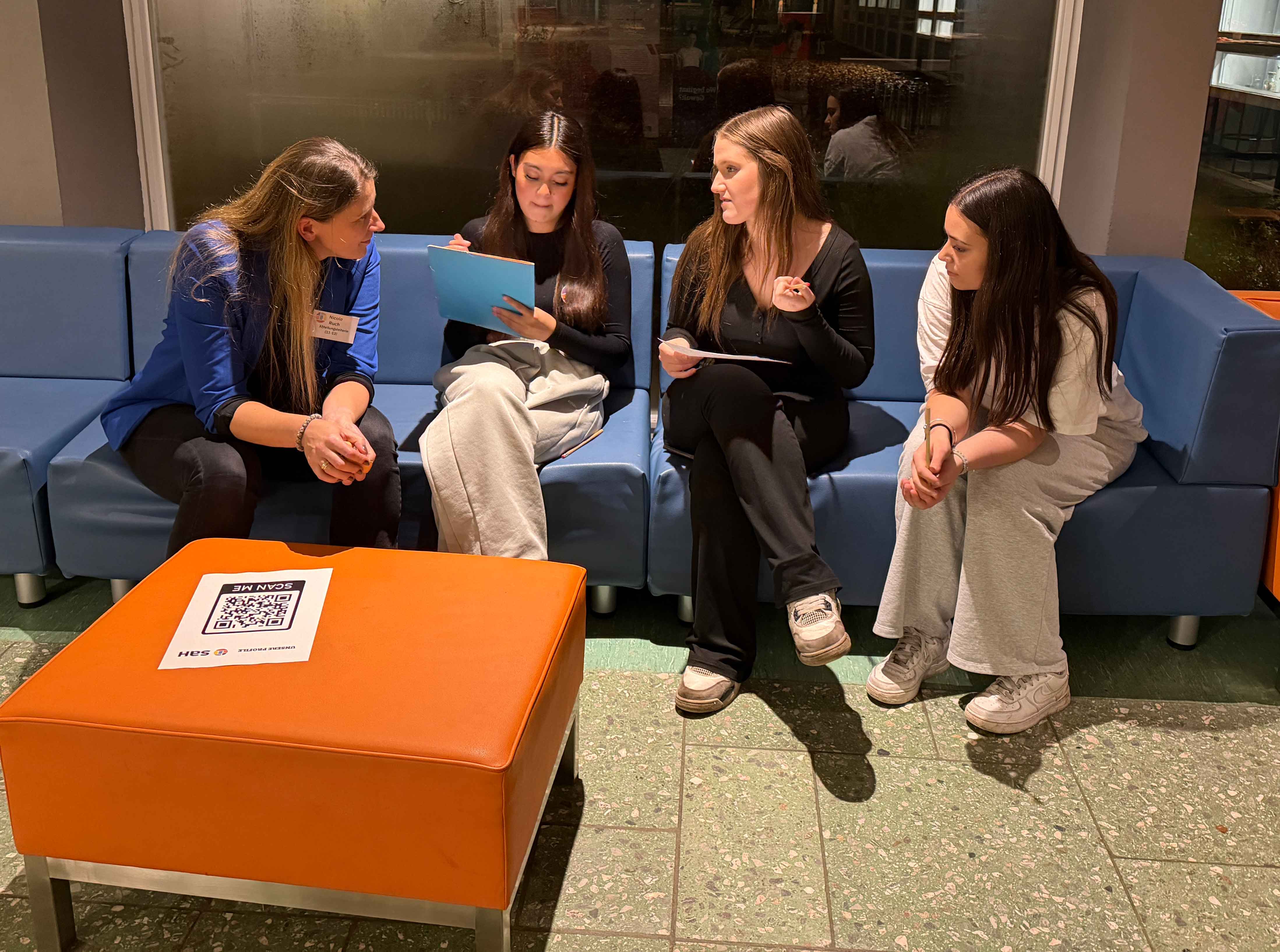 Von Frau Ruch wollten wir wissen, was unsere Oberstufe besonders macht. Sie meinte, dass es einen eigenen, kleineren Standort für die Oberstufe gibt, damit man sich gut zurechtfindet. Und dass es jetzt ein neues Profil gibt: Business.