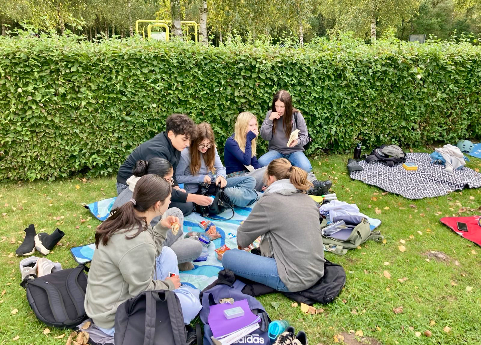 Die Projektwoche im Jahrgang 7 wurde mit einer aktiven Spielaktion im Freien abgeschlossen. Schon der Hinweg mit dem Fahrrad gestaltete sich für einige Klassen sportlich - und im Norderstedter Stadtpark gab es dann viele Aktivitäten zum ausprobieren, wobei natürlich Fußball nicht fehlen durfte. Beim Picknick mischten sich die Klassen und gegen Mittag starteten bei Sonnenschein alle entspannt und zufrieden ins Wochenende.