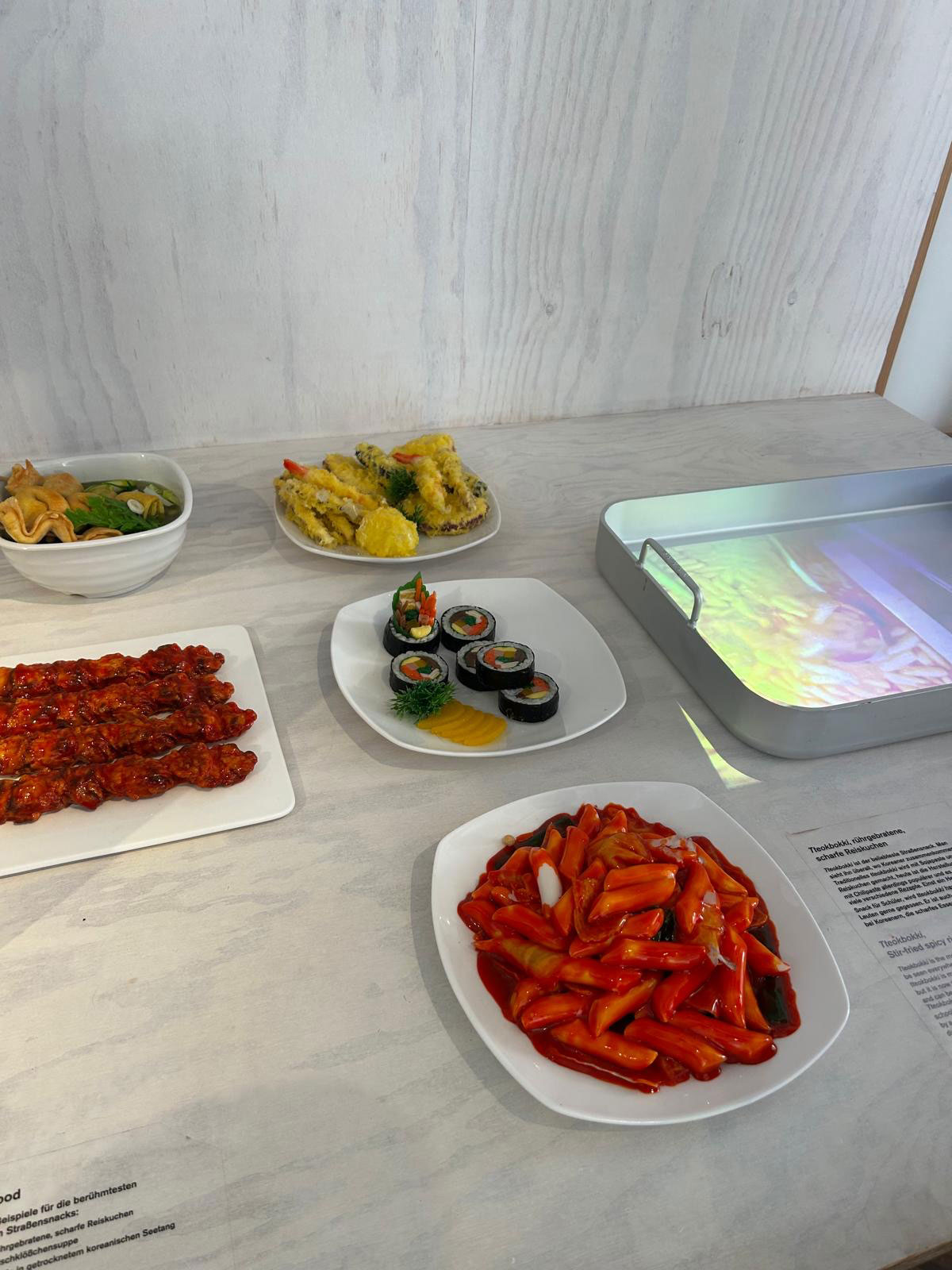 Am Mittwoch ging es, diesmal mit einem deutlich kulturellen Schwerpunkt, weiter. Denn während andere an diesem Tag im Klassenzimmer saßen, unternahmen wir einen besonderen Ausflug. Wir besuchten das MARKK Museum am Rothenbaum. Dort erwartete uns die „Uri Korea“ Ausstellung, die uns einen eindrucksvollen Einblick in Koreas Kultur, Kunst und Alltagssprache bot. Die Ausstellung war in zwei spannende Bereiche gegliedert. Im ersten Teil standen Eindrücke des heutigen Koreas im Mittelpunkt. Dort konnten wir viele detailreiche Modelle betrachten, die das moderne Alltagsleben, wie zum Beispiel K-Pop zeigen. Besonders beeindruckend waren das nachgestellte Kinderzimmer, eine typische Bahnstation, eine Küche sowie verschiedenes traditionelles und modernes Geschirr. Der zweite Ausstellungsbereich führte uns in die Geschichte Koreas – dort lernten wie alte Traditionen, wie Kartenkunst und andere kulturelle und gesellschaftliche Entwicklungen kennen. Ein besonderes Highlight war die Einführung in die koreanische Schrift Hangeul. Wir erfuhren nicht nur, wie dieses Schriftsystem aufgebaut ist, sondern durften auch kreativ werden und ein eigenes Cover gestalten, auf dem wir unsere neu gelernten Schriftzeichen anwenden konnten. Der Ausflug bot uns eine vielseitige Reise in die koreanische Kultur und Geschichte und machte deutlich, wie spannend es ist, sich mit einem Land jenseits der üblichen Klischees zu beschäftigen.